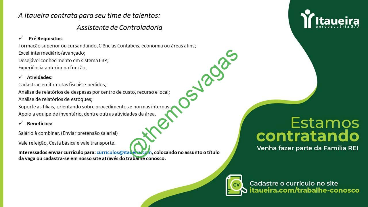 – Interessados(as) e que atendam ao perfil solicitado acima, devem enviar o currículo para o e-mail curriculos@itaueiras.com, contendo no titulo/assunto “Assistente de Controladoria – FOR