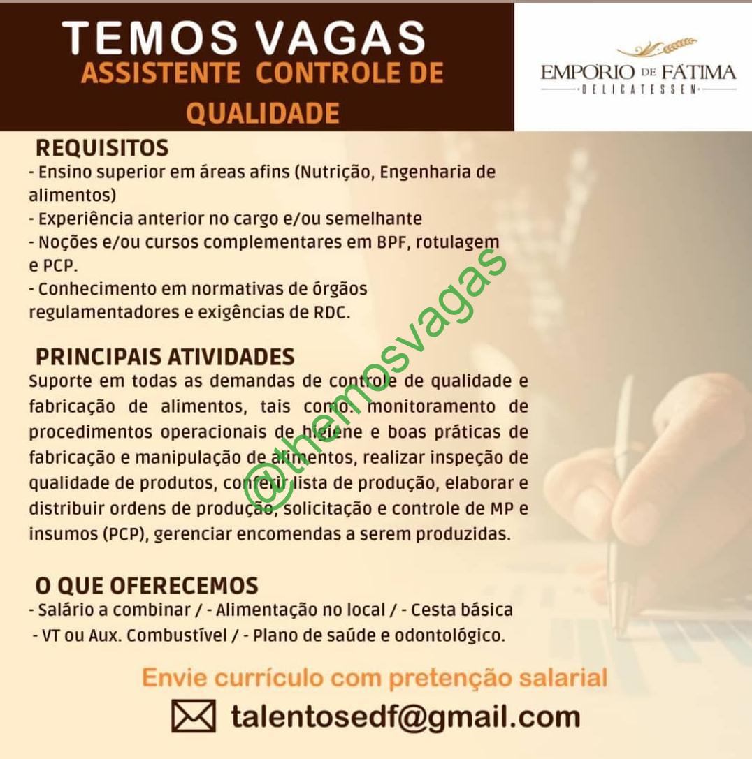 Assistente de Controle de Qualidade | Fortaleza – CE | 01 vaga(s)