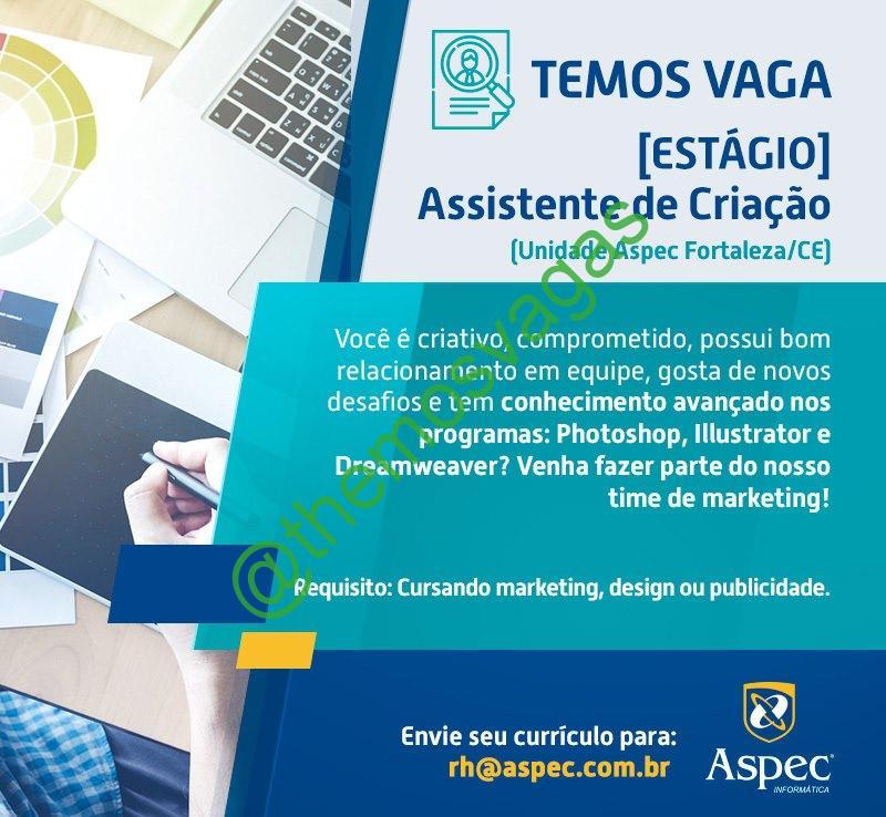 – Interessados(as) e que atendam ao perfil solicitado acima, devem enviar o currículo para o e-mail rh@aspec.com.br , colocando no título “Assistente de Criação”.