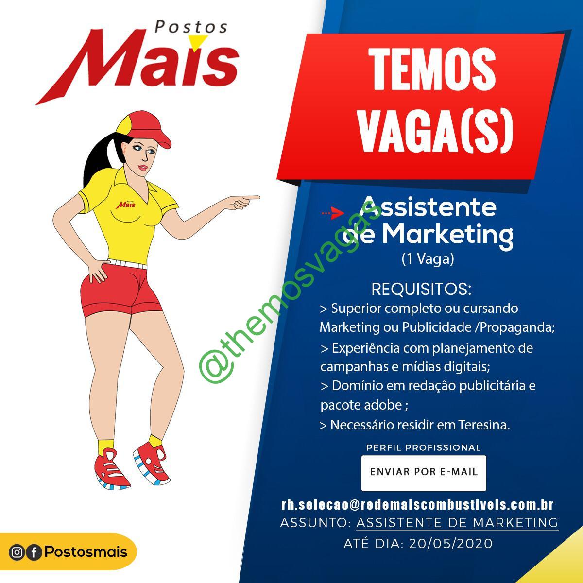 – Interessados(as) e que atendam ao perfil solicitado acima, devem enviar o currículo até 20/05/2020 para o e-mail rh.selecao@redemaiscombustiveis.com.br , contendo no título/assunto “Assistente de Marketing“.
