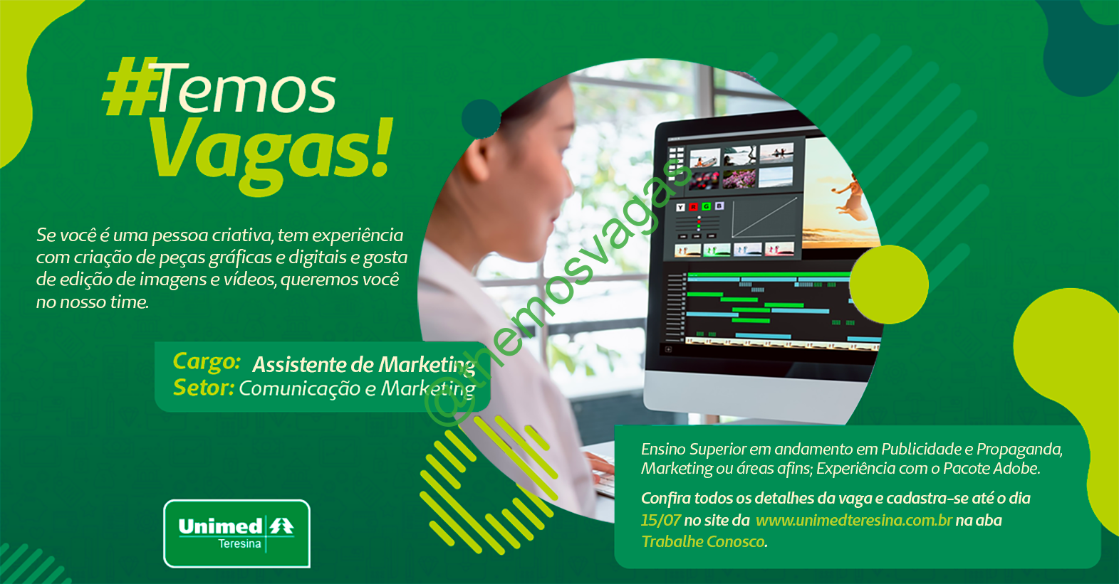 – Interessados(as) e que atendam ao perfil solicitado acima, devem cadastrar o currículo até 15/07/2020 através do site de cadastro da Unimed neste LINK.
