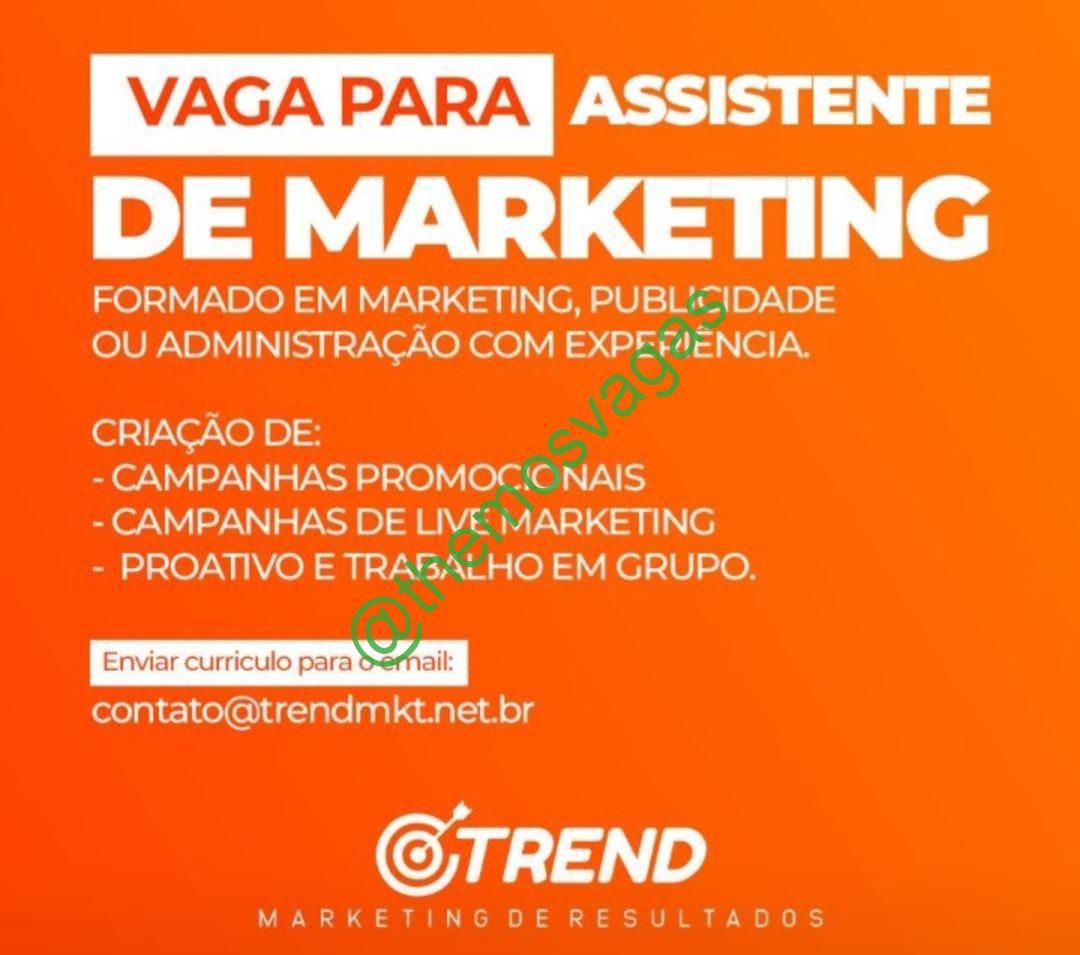 – Interessados(as) e que atendam ao perfil solicitado acima, devem enviar o currículo para o e-mail contato@trendmkt.net.br, contendo no título/assunto “Assistente de Marketing – THE“.