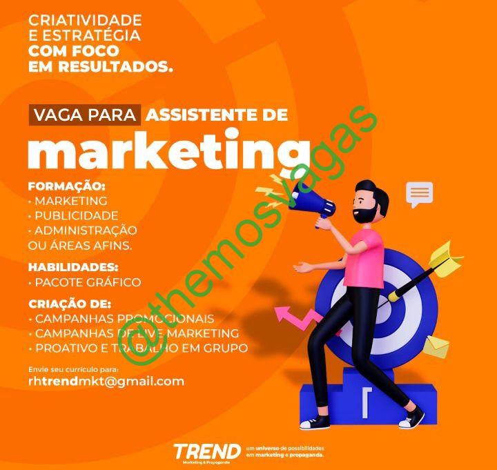 – Interessados(as) e que atendam ao perfil solicitado acima, devem enviar o currículo para o e-mail rhtrendmkt@gmail.com contendo no título/assunto “Assistente de MArketing THE