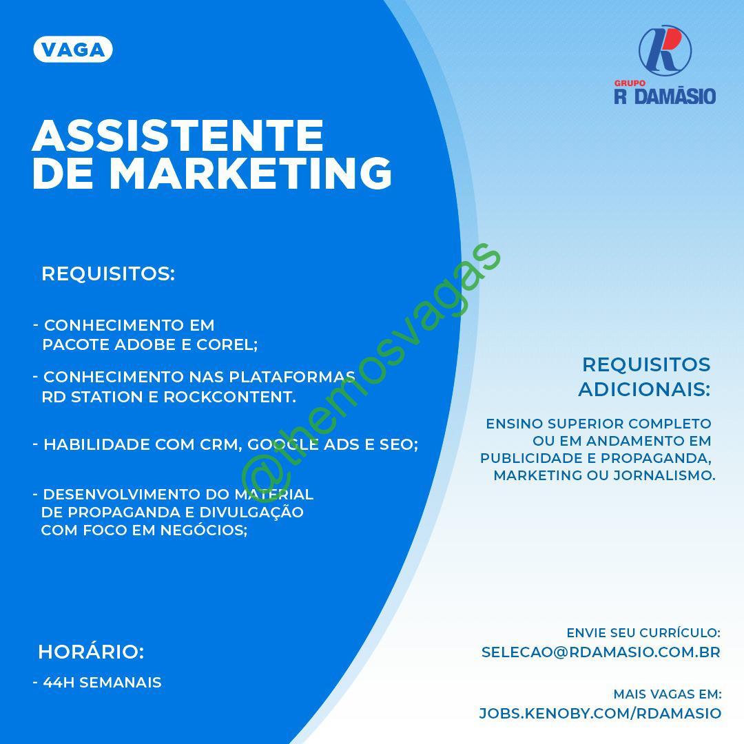 – Interessados(as) e que atendam ao perfil solicitado acima, devem enviar o currículo para o e-mail selecao@rdamasio.com.br contendo no título/assunto “Assistente de MarketingTHE