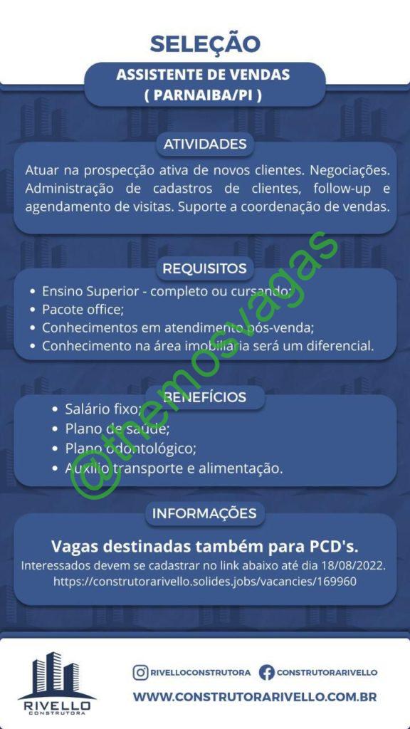 Assistente de Vendas | Parnaíba – PI | 04 vaga(s)
