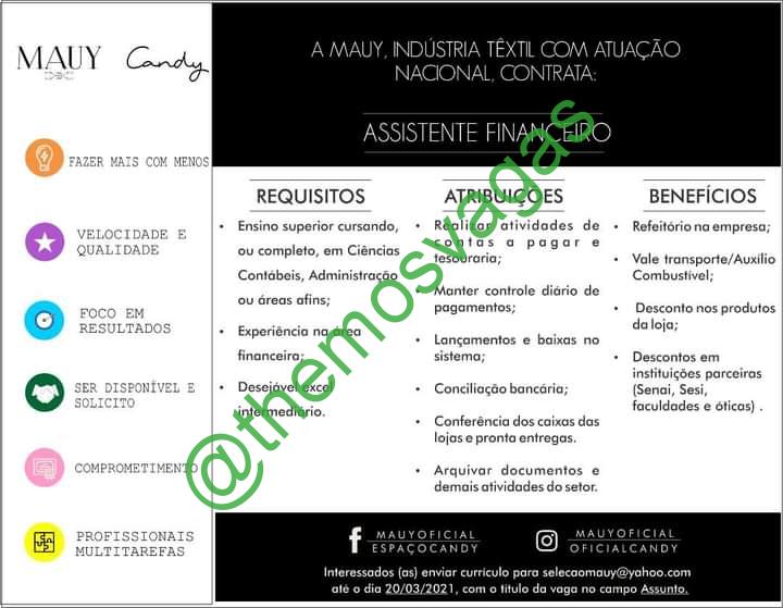 –  Interessados(as) e que atendam ao perfil solicitado acima, devem enviar o currículo até 20/03/2021  para o e-mail selecaomauy@yahoo.com, contendo no título/assunto “Assistente Finaceiro – FOR“.