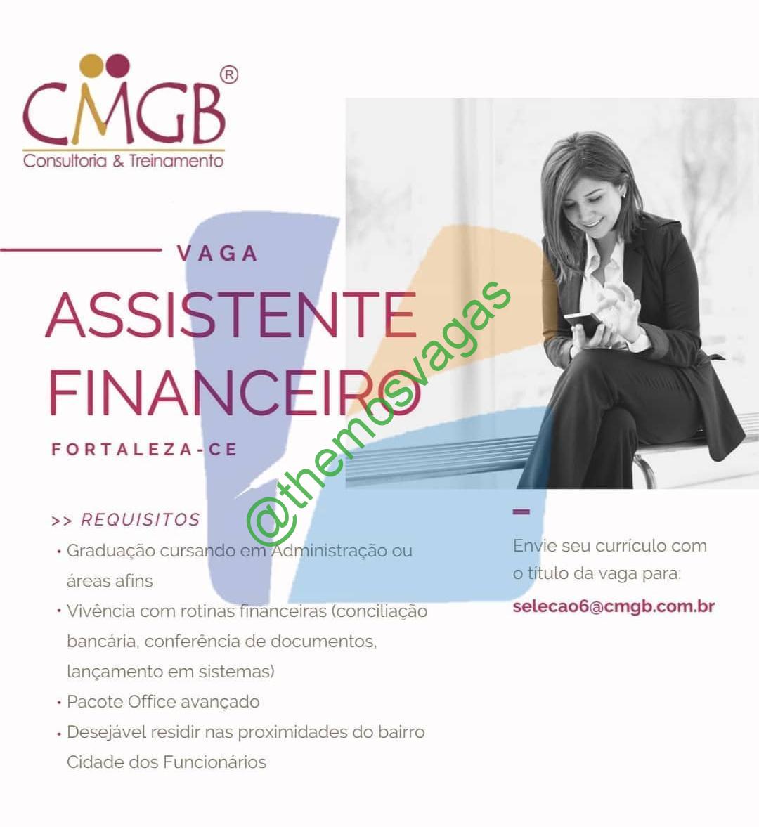– Interessados(as) e que atendam ao perfil solicitado acima, devem enviar o currículo para o e-mail selecao6@cmgb.com.br, contendo no titulo/assunto “Assistente Financeiro – FOR