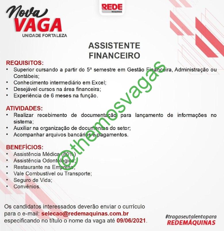 – Interessados(as) e que atendam ao perfil solicitado acima, devem enviar o currículo até 09|06|2021 para o e-mail selecao@redemauinas.com.br, contendo no titulo/assunto “Assistente Financeiro – FOR