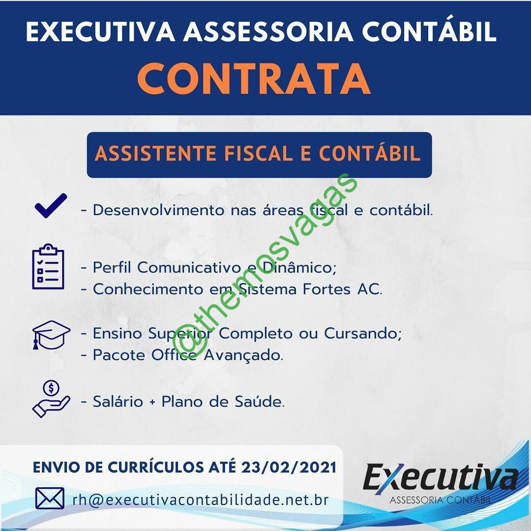 – Interessados(as) e que atendam ao perfil solicitado acima, devem enviar o currículo até 23/02/2021 para o e-mail rh@executivacontabilidade.net.br , contendo no título/assunto “Assistente Fiscal e Contábil – THE“.