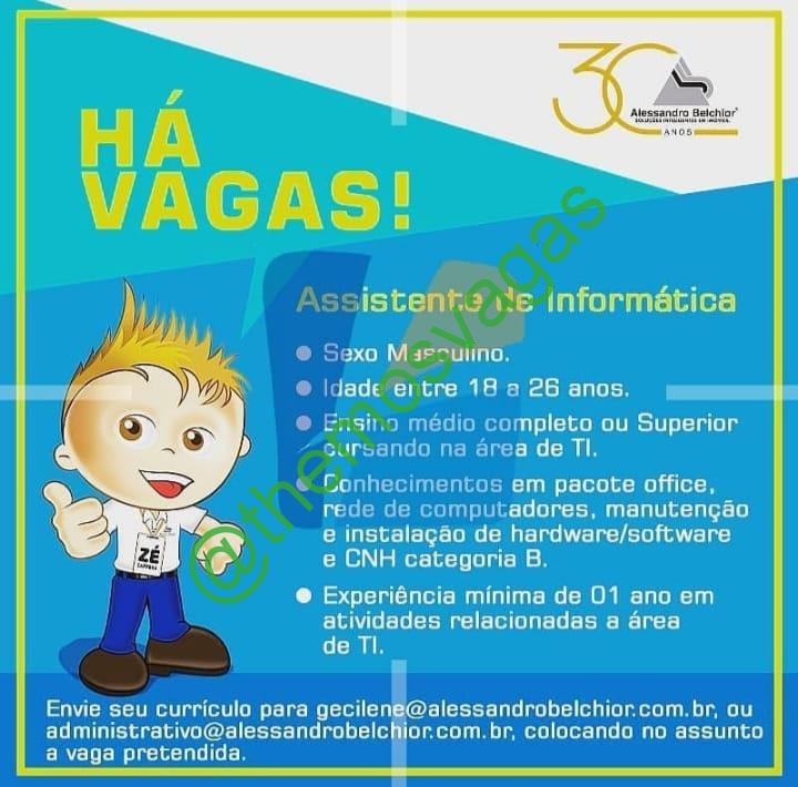 – Interessados(as) e que atendam ao perfil solicitado acima, devem enviar o currículo para o e-mail gecilene@alessandrobelchior.com.br , colocando no título/assunto “Assistente de Informatica – FOR”.