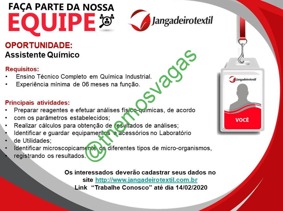 ---------- ATENÇÃO: Essa vaga é de responsabilidade do anunciante. Fique atento para possíveis golpes. Se perceber algo suspeito, nos comunique através do e-mail floromauel@gmail.com colocando no título "Themos Vagas - Denúncia" juntamente com o link da publicação e o motivo da denúncia na descrição da mensagem para que possamos analisar e parar de divulgar o anúncio. ----------