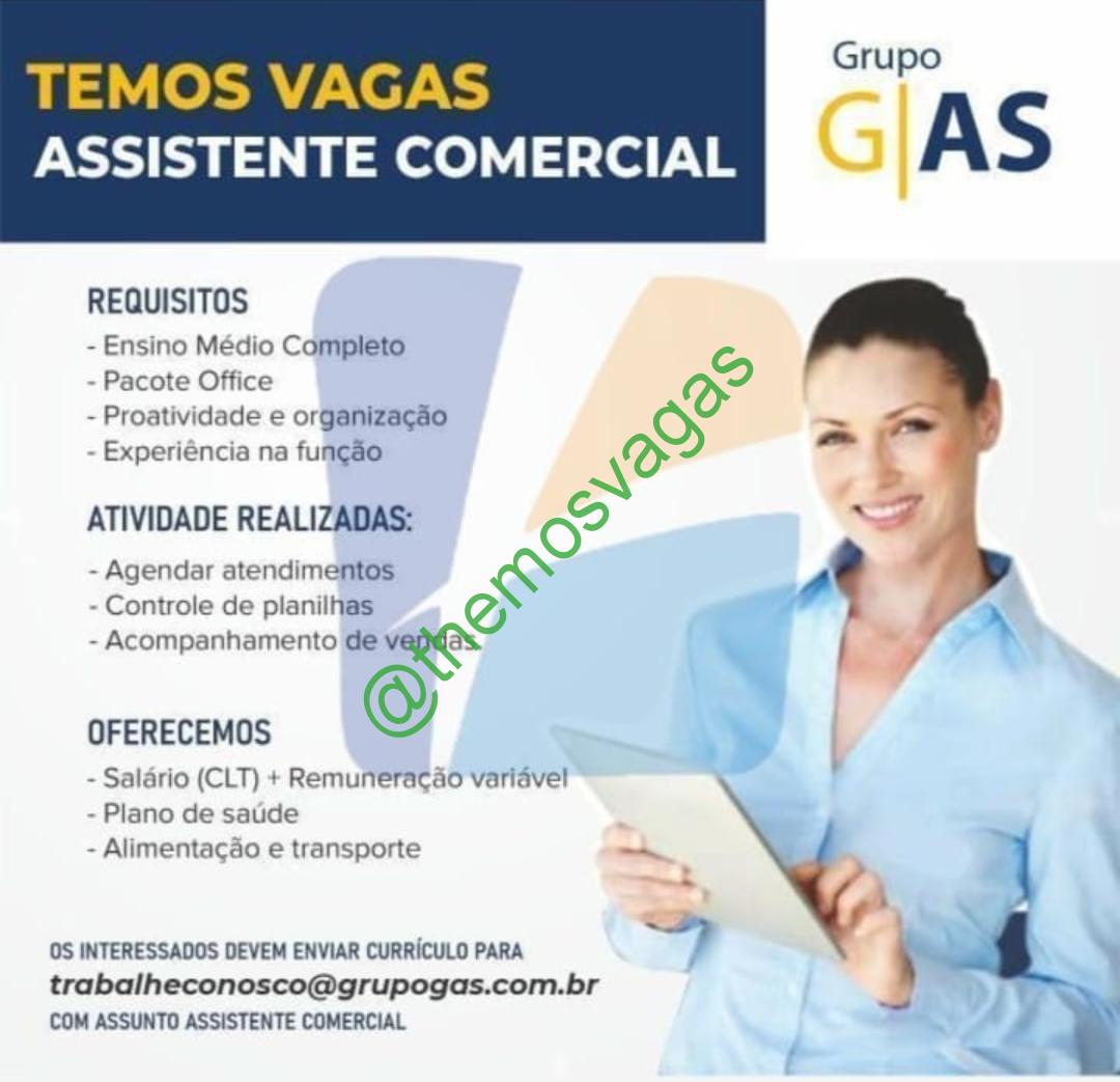 – Interessados(as) e que atendam ao perfil solicitado acima, devem enviar o currículo para o e-mail trabalheconosco@grupogas.com.br, contendo no titulo/assunto “Assitente Comercial – FOR