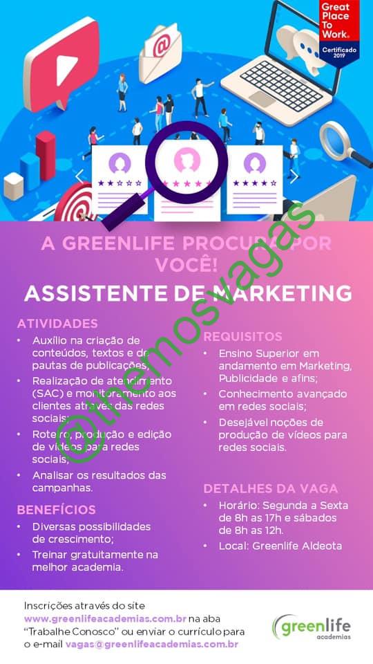 – Interessados(as) e que atendam ao perfil solicitado acima, devem enviar o currículo para o e-mail vagas@grennlifeacademias.com.br contendo no título/assunto “Assistente de Marketing – FOR ” ou cadastrar o currículo no site de cadastro