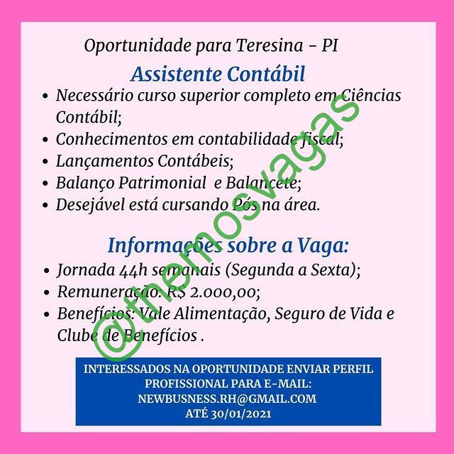Assistente Contábil | Teresina – PI | 01 vaga(s)