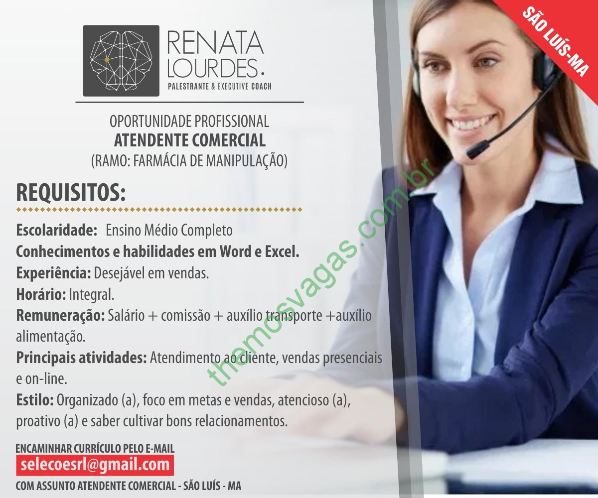 Interessados(as) e que atendam aos requisitos devem enviar o perfil profissional, colocando no título do e-mail “Atendente Comercial – são Luís – MA”,  para: selecoesrl@gmail.com
