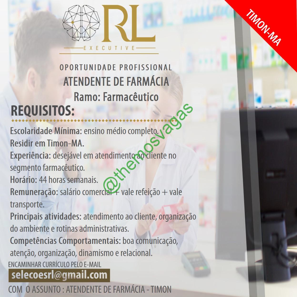 – Interessados(as) e que atendam ao perfil solicitado acima, devem enviar o currículo para o e-mail selecoesrl@gmail.com contendo no título/assunto “Atendente de Farmácia – Timon”