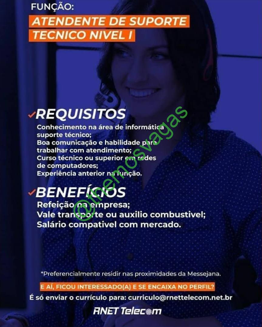 – Interessados(as) e que atendam ao perfil solicitado acima, devem enviar o currículo para o e-mail curriculo@rnettelecom.net.br, contendo no titulo/assunto “Atendente de Suporte (Técnico Nível I) – FOR