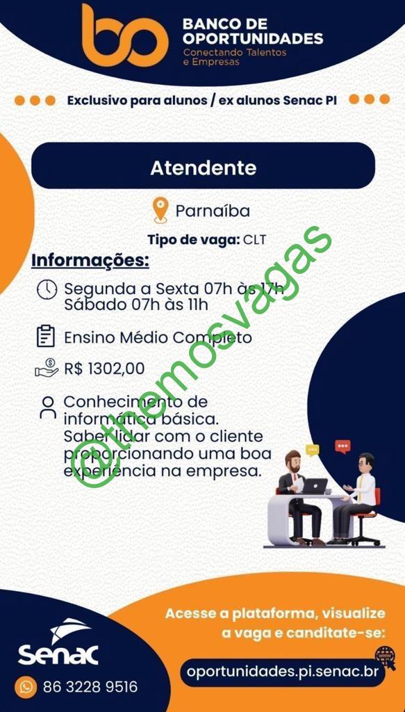 Atendente | Parnaíba – PI | 01 vaga(s)