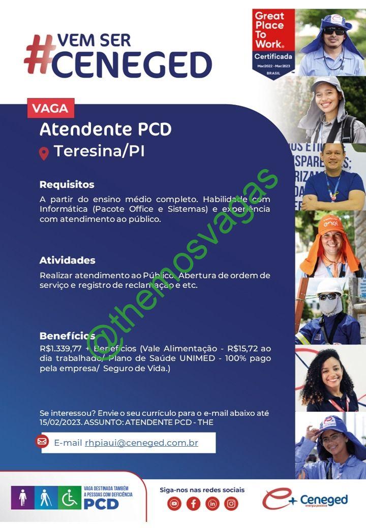 – Interessados(as) e que atendam ao perfil solicitado acima, devem enviar o currículo até 15/02/2023 para o e-mail rhpiaui@ceneged.com.br contendo no título/assunto “Atendente PCD – THE“.