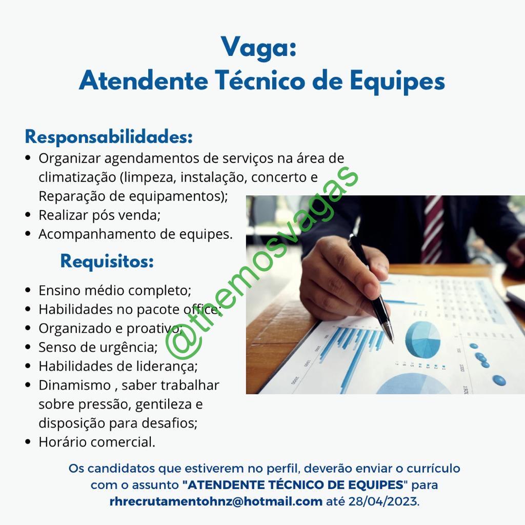 – Interessados(as) e que atendam ao perfil solicitado acima, devem enviar o currículo até 28/04/2023 para o e-mail rhrecrutamentohnz@hotmail.com contendo no título/assunto “Atendente Técnico de Equipes“.