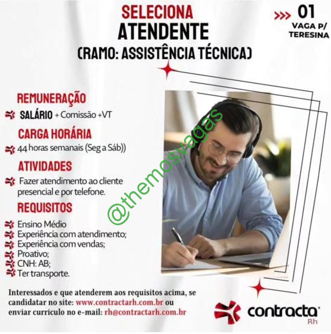 – Interessados(as) e que atendam ao perfil solicitado acima, devem enviar o currículo para o e-mail rh@contractarh.com.br contendo no título/assunto “Atendente – THE“.