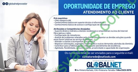 – Interessados(as) e que atendam aos requisitos devem enviar o perfil profissional, colocando no título do e-mail “Atendimento ao Cliente”, para: contatorede@outlook.com