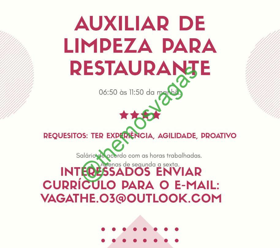– Interessados(as) e que atendam ao perfil solicitado acima, devem enviar o currículo para o e-mail vagathe.03@outlook.com , contendo no título/assunto “Auxiliar de Limpeza – THE