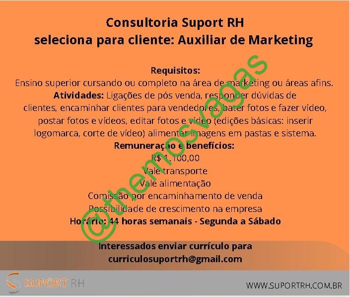 – Interessados(as) e que atendam ao perfil solicitado acima, devem  enviar o currículo  para e-mail curriculosuportrh@gmail.com, contendo no titulo/assunto “Aux de Marketing – FOR”.