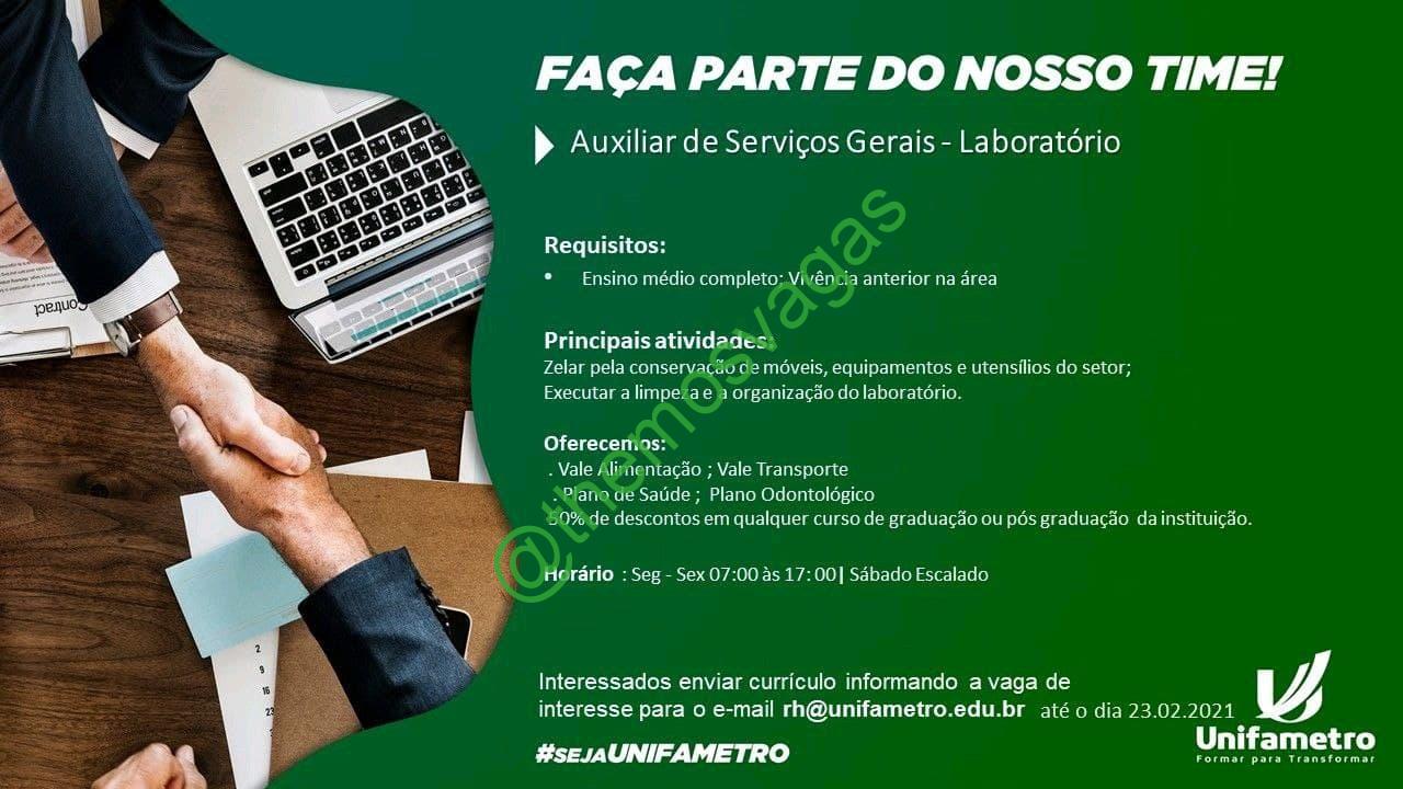 – Interessados(as) e que atendam ao perfil solicitado acima, devem enviar o currículo  até 23/02/2021 para e-mail rh@unifametro.edu.brcontendo no titulo/assunto “Aux de Serviços Gerais – FOR”.