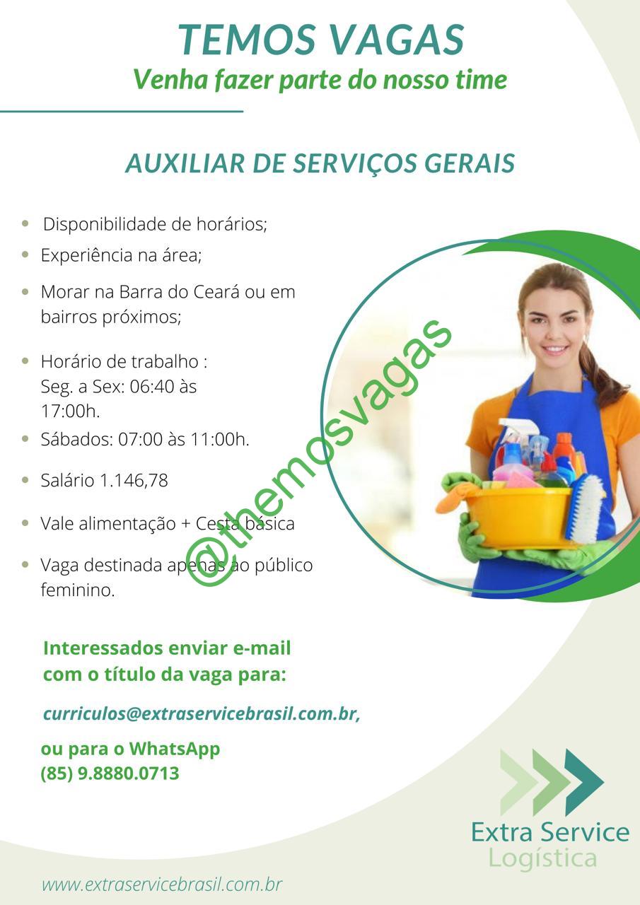 – Interessados(as) e que atendam ao perfil solicitado acima, devem enviar o currículo  para o e- mail curriculos@extraservicebrasil.com.br, contendo no título/assunto “Aux de Serviços Gerais – FOR”.