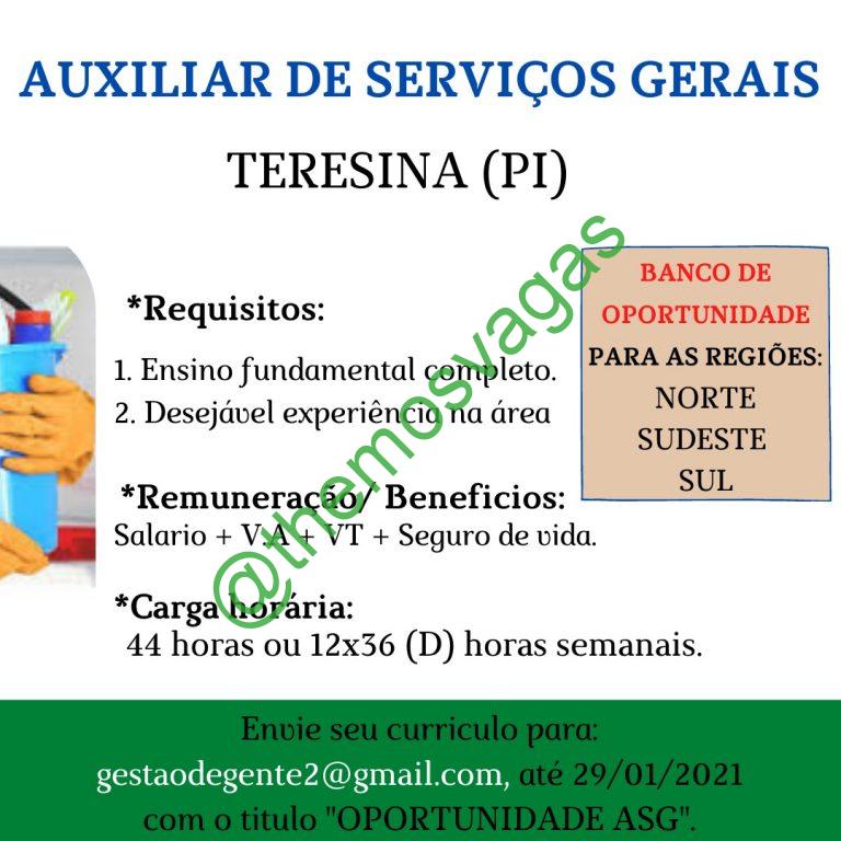 Auxiliar de Serviços Gerais | Teresina – PI | 01 vaga(s)