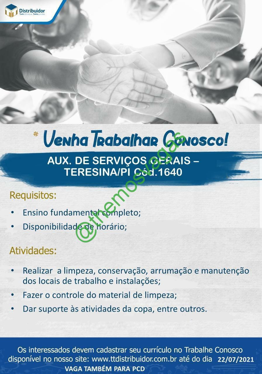 Aux de Serviços Gerais | Teresina – PI | 01 vaga(s)