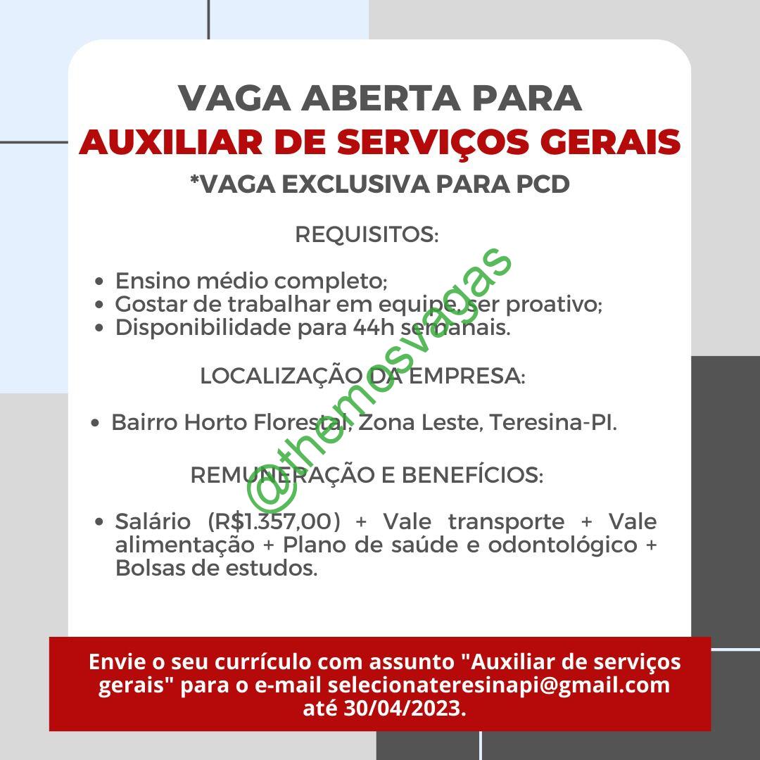 Auxiliar de Serviços Gerais PCD | Teresina – PI | 01 vaga(s)