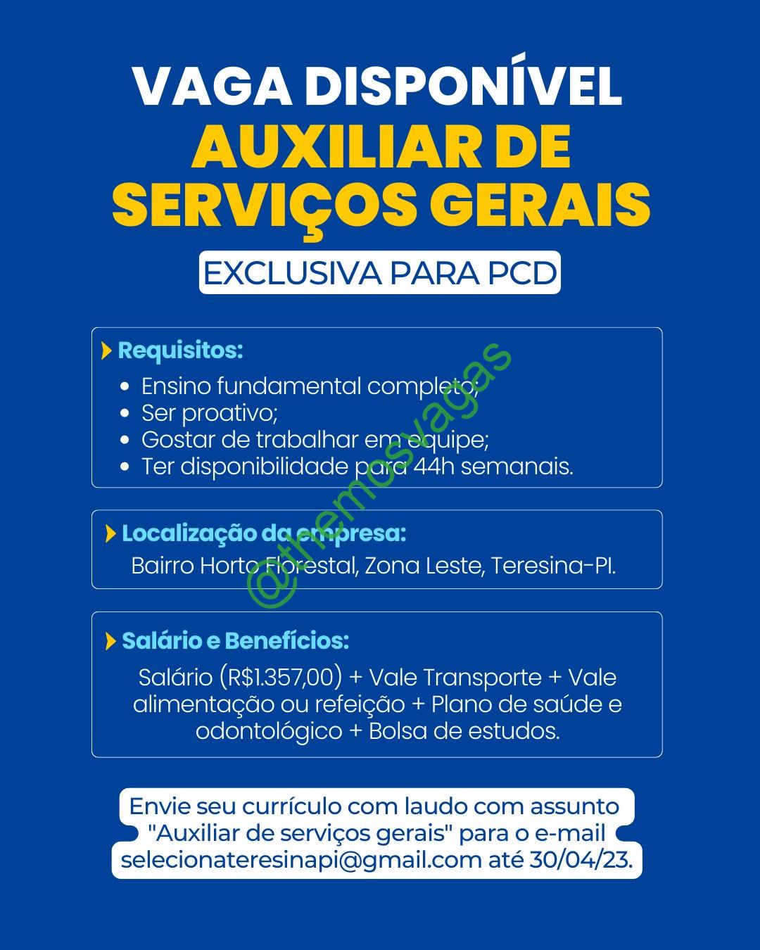 Aux Serviços Gerais PCD | Teresina – PI | 01 vaga(s)