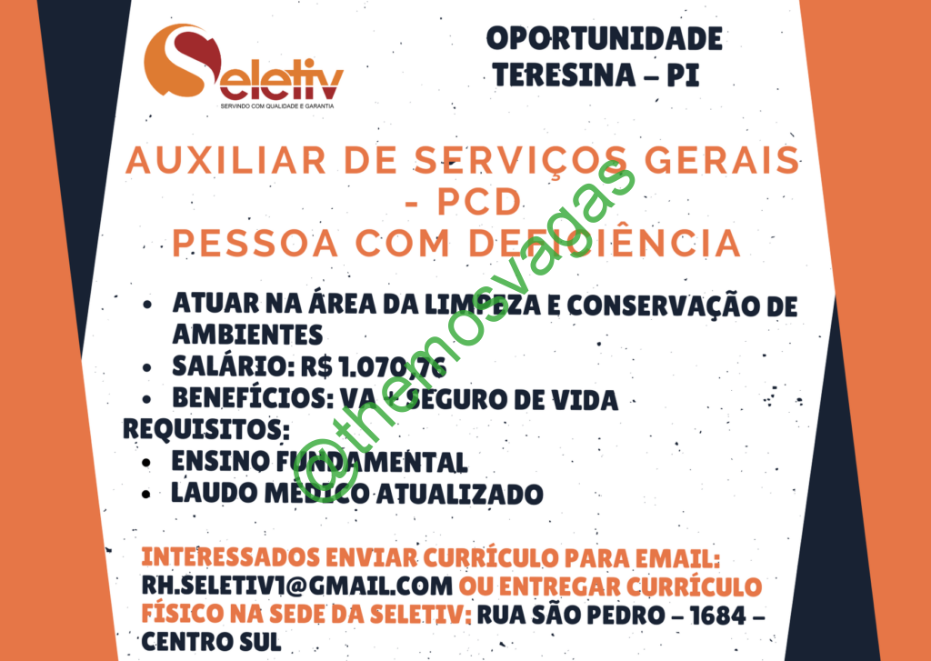 Aux Serviços Gerais PCD | Teresina – PI | 01 vaga(s)