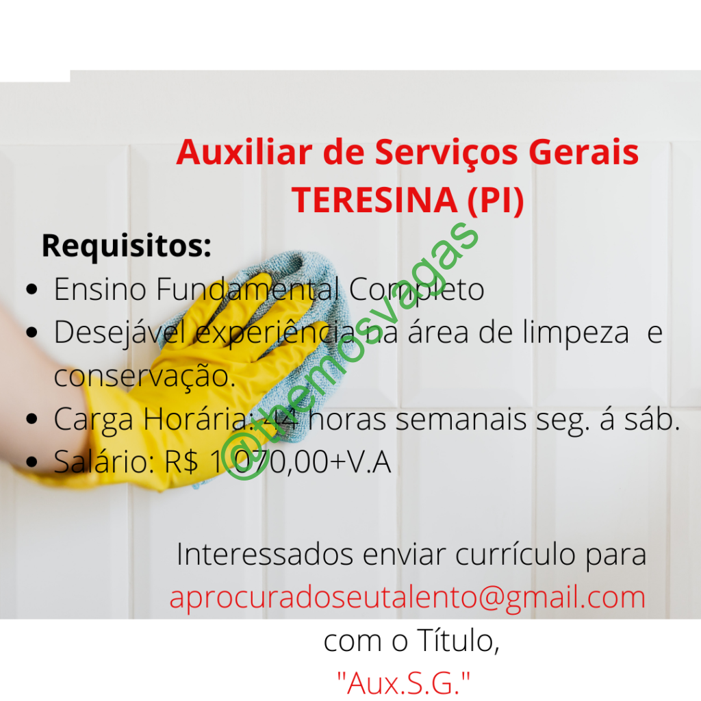 Auxiliar Serviços Gerais | Teresina – PI | 01 vaga(s)
