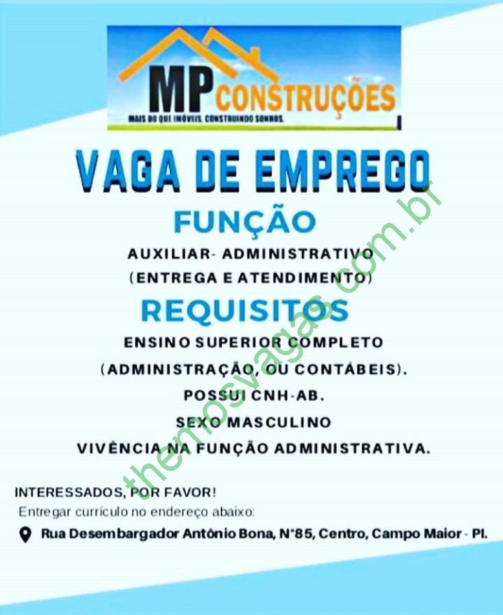 – Interessados(as) e que atendam ao perfil solicitado acima, devem enviar o currículo na Rua Desembargador Antônio Bona, nº 85, Centro de Campo Maior – PI.