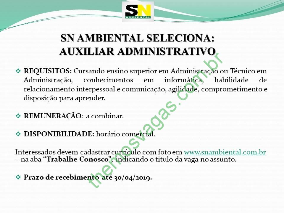 ---------- ATENÇÃO: Essa vaga é de responsabilidade do anunciante. Fique atento para possíveis golpes. Se perceber algo suspeito, nos comunique através do e-mail floromauel@gmail.com colocando no título "Themos Vagas - Denúncia" juntamente com o link da publicação e o motivo da denúncia na descrição da mensagem para que possamos analisar e parar de divulgar o anúncio. ----------
