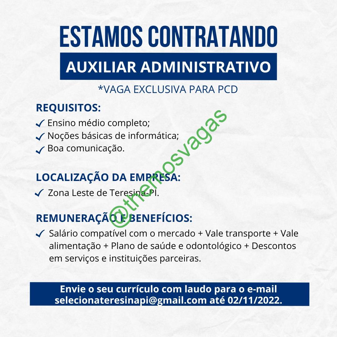 Auxiliar Administrativo PCD | Teresina – PI | 01 vaga(s)