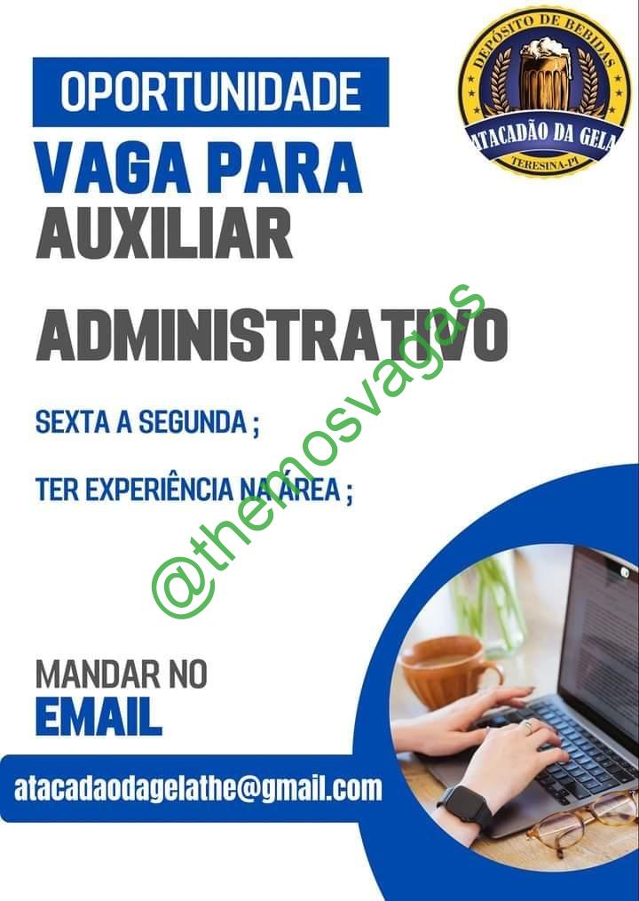 – Interessados(as) e que atendam ao perfil solicitado acima, devem enviar o currículo para o e-mail atacadaodagelathe@gmail.com contendo no título/assunto “Auxiliar Administrativo – THE“.