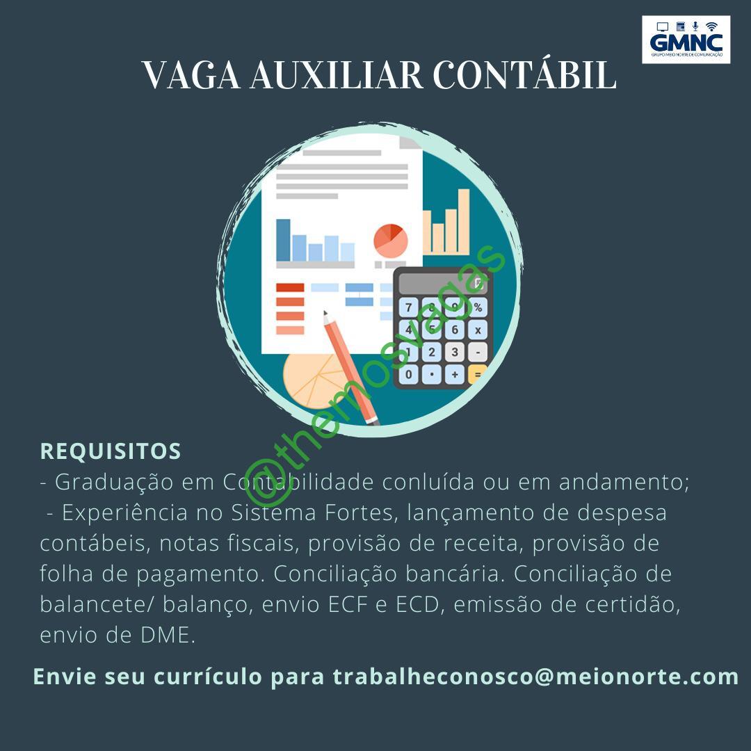 – Interessados(as) e que atendam ao perfil solicitado acima, devem enviar o currículo para o e-mail trabalheconosco@meionorte.com contendo no título/assunto “Auxiliar Contábil – THE“.