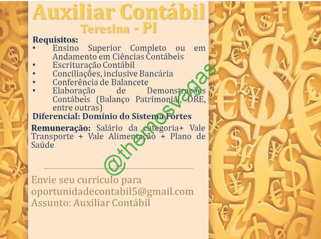 Auxiliar Contábil | Teresina – PI | 01 vaga(s)