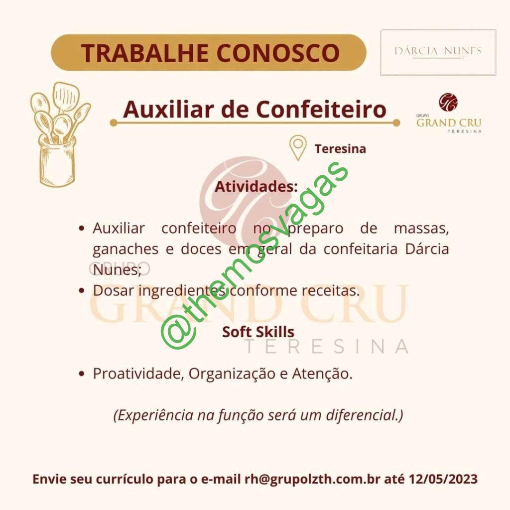 Auxiliar de Confeiteiro | Teresina – PI | 01 vaga(s)