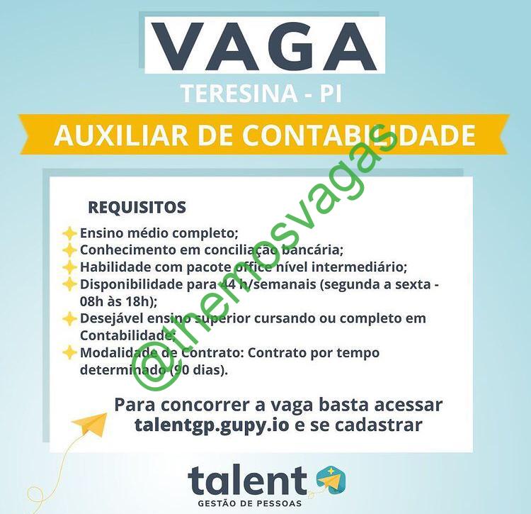 Auxiliar de Contabilidade | Teresina – PI | 01 vaga(s)