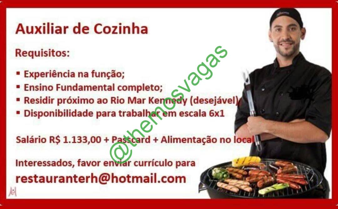 – Interessados(as) e que atendam ao perfil solicitado acima, devem enviar o currículo para o e-mail restauranterh@hotmail.com, contendo no titulo/assunto “Auxiliar de Cozinha – FOR