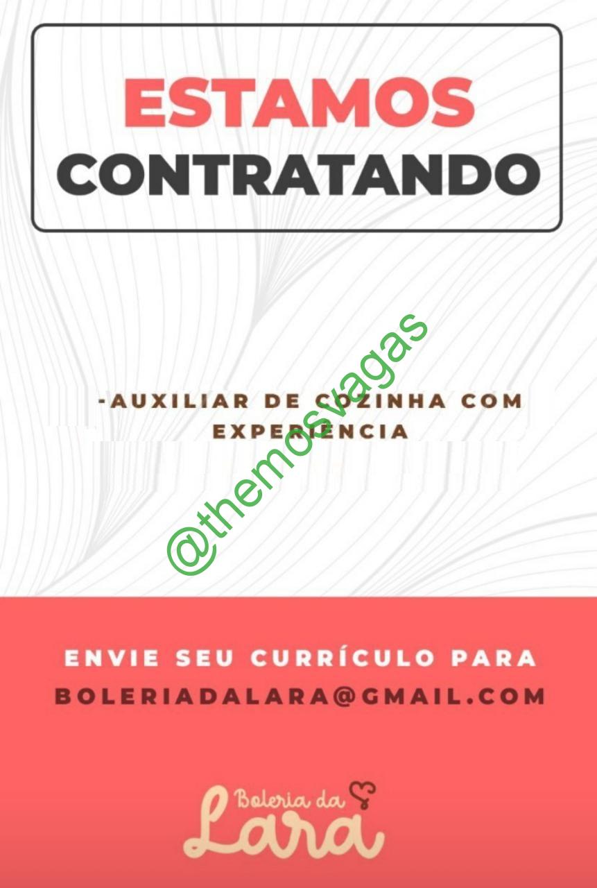 – Interessados(as) e que atendam ao perfil solicitado acima, devem enviar o currículo para o e-mail boleriadalara@gmail.com, contendo no título/assunto “Auxiliar de Cozinha – PHB“.