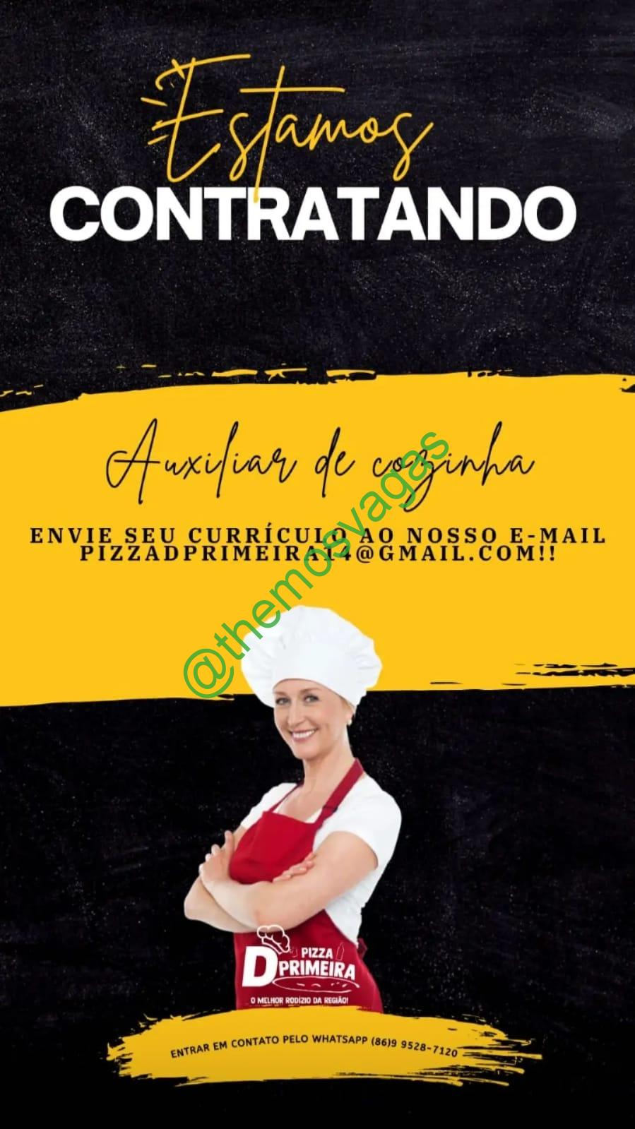 – Interessados(as) e que atendam ao perfil solicitado acima, devem enviar o currículo para o e-mail pizzadprimeira14@gmail.com contendo no título/assunto “Auxiliar de Cozinha – PHB”.