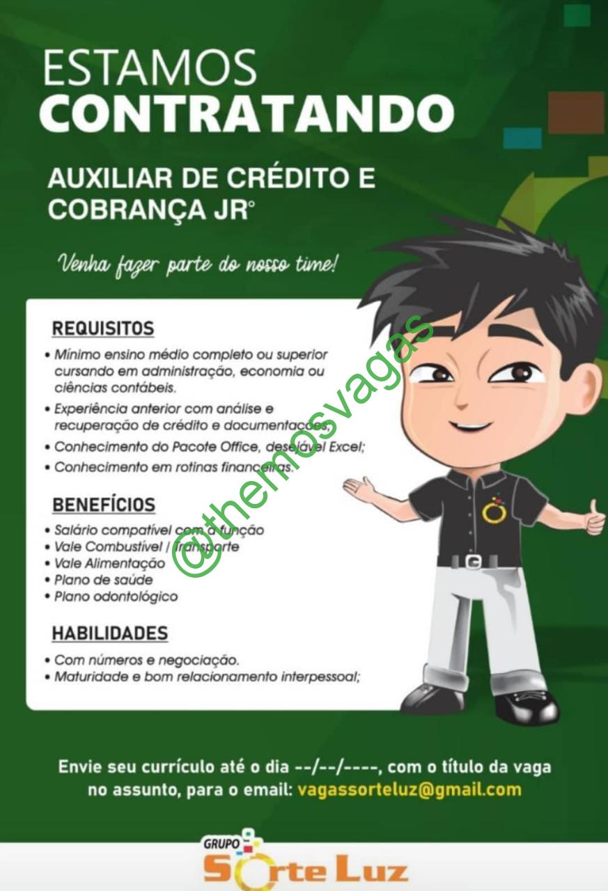 –  Interessados(as) e que atendam ao perfil solicitado acima, devem enviar o currículo  para o e-mail vagassorteluz@gmail.com, contendo no título/assunto “Auxiliar de Crédito e Cobrança – FOR“.