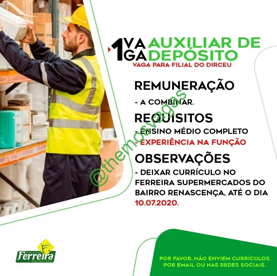 – Interessados(as) e que atendam ao perfil solicitado acima, devem entregar exclusivamente o currículo até 10/07/2020 no Ferreira Supermercados do Bairro Renascença 2 na Rua Tenente Mariano, Q52, C2B.