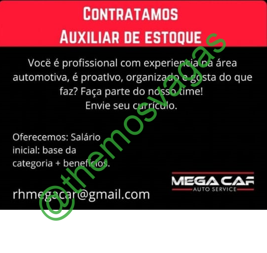 – Interessados(as) e que atendam ao perfil solicitado acima, devem enviar o currículo para o e-mail rhmegacar@gmail.com, contendo no titulo/assunto “Auxiliar de Estoque – FOR